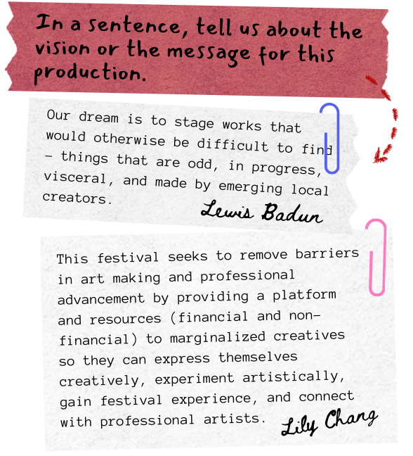 This festival seeks to remove barriers in art making and professional advancement by providing a platform and resources (financial and non-financial) to marginalized creatives so they can express themselves creatively, experiment artistically, gain festival experience, and connect with professional artists.